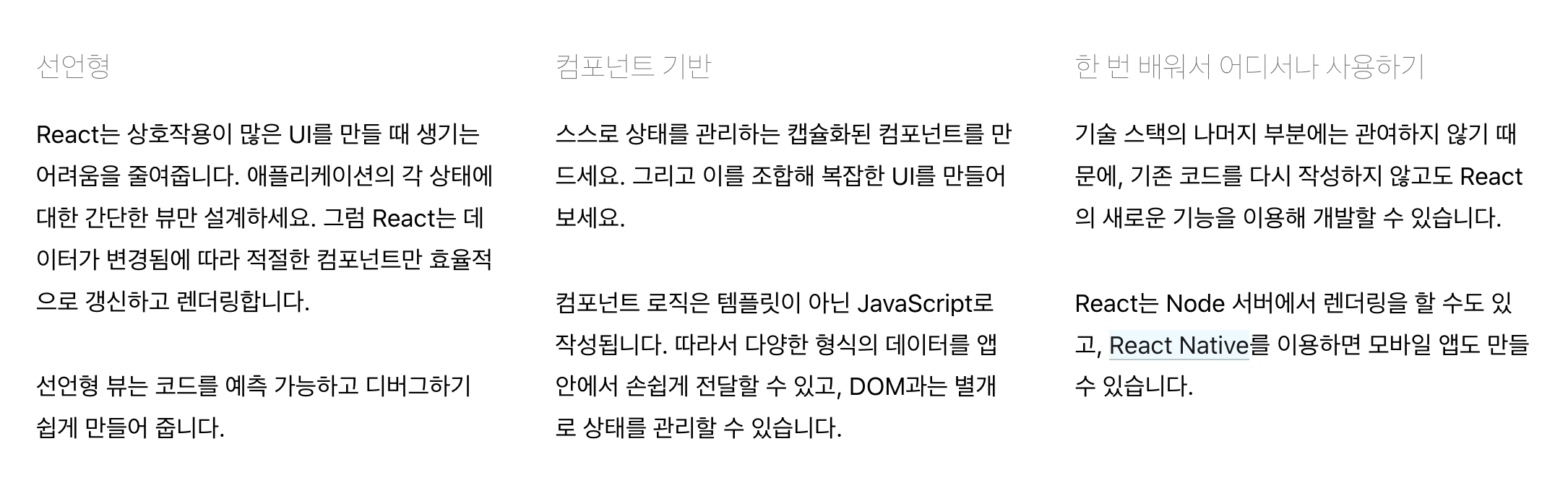 선언형, 컴포넌트 기반, 재사용성