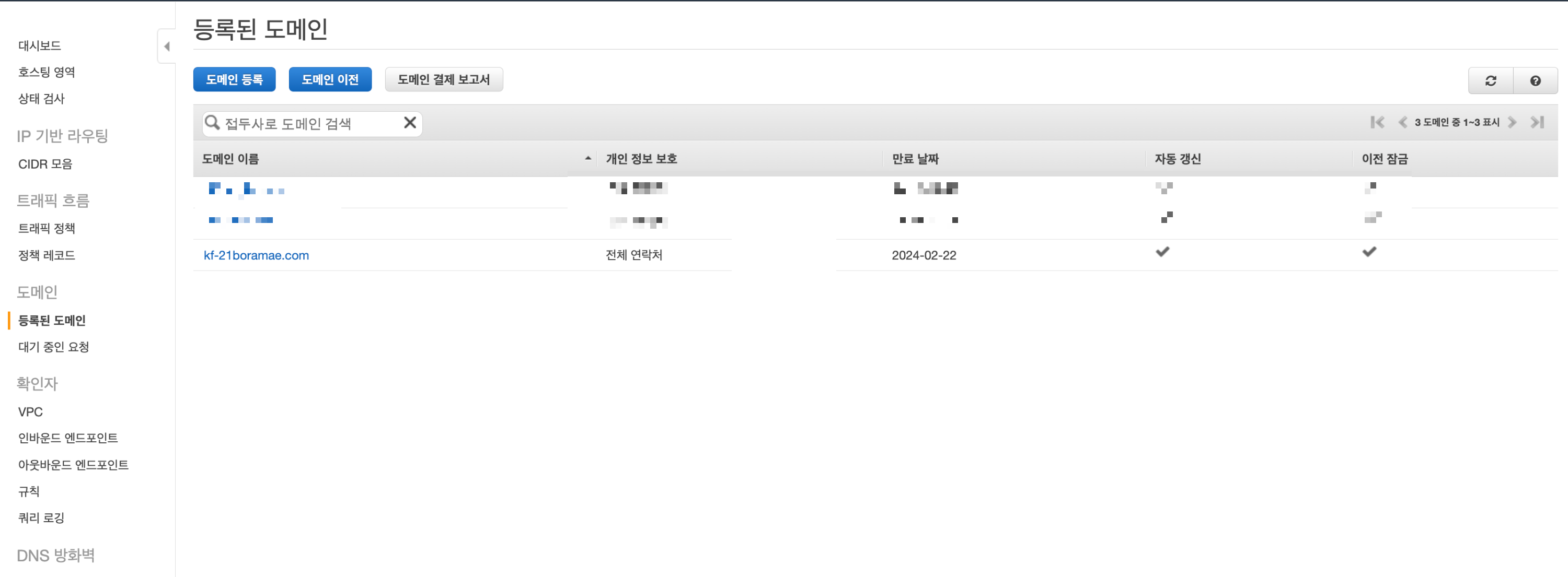 이 간단한 과정을 마치면, 이 도메인은 앞으로 내가 결제한 기간만큼 내 소유가 된다.(현재 kf-21boramae.com은 1년 동안 내 소유지만, 자동갱신 및 이전방지가 되어있기 때문에 내가 희망하는 기간만큼 사용할 수 있다. 기간만 잘 놓치지 않고 재결제만 진행하면 된다.)