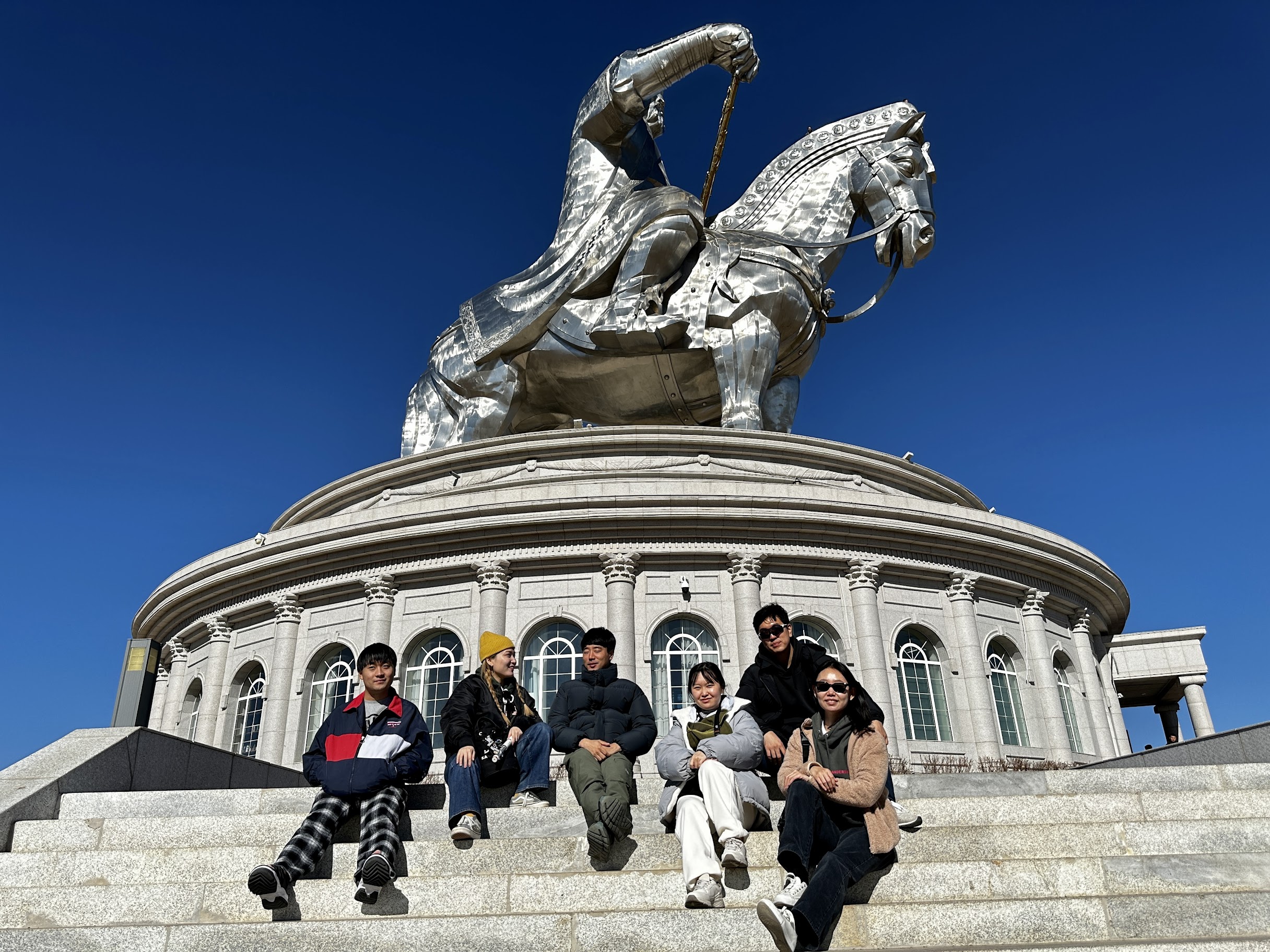 역사상 가장 위대한 정복자를 뽑으라고 하면 나라마다 다른 사람이 나올 것이다. 유럽에서는 프랑스의 나폴레옹 황제, 마케도니아의 알렉산더 대왕 혹은 이슬람에서는 우마르 칼리프 등등 정복자라고 하면 이 세상이 이름을 내걸 수 있는 사람이 많이 있다고 생각한다. 하지만, 이 사진의 뒤에 있는 이 사람 앞에서는 모두 작아질 수 밖에 없을 것 같다. 나는 우리나라를 9회에 걸쳐 침략한 대 원제국을 세운 칭기즈칸의 동상에 방문했다. 우리나라 역사를 통해 보면 좋아할 수 없는 사람이지만, 개인적으로는 정말 대단한 사람이라고 생각하고 또 존경하는 인물이다.