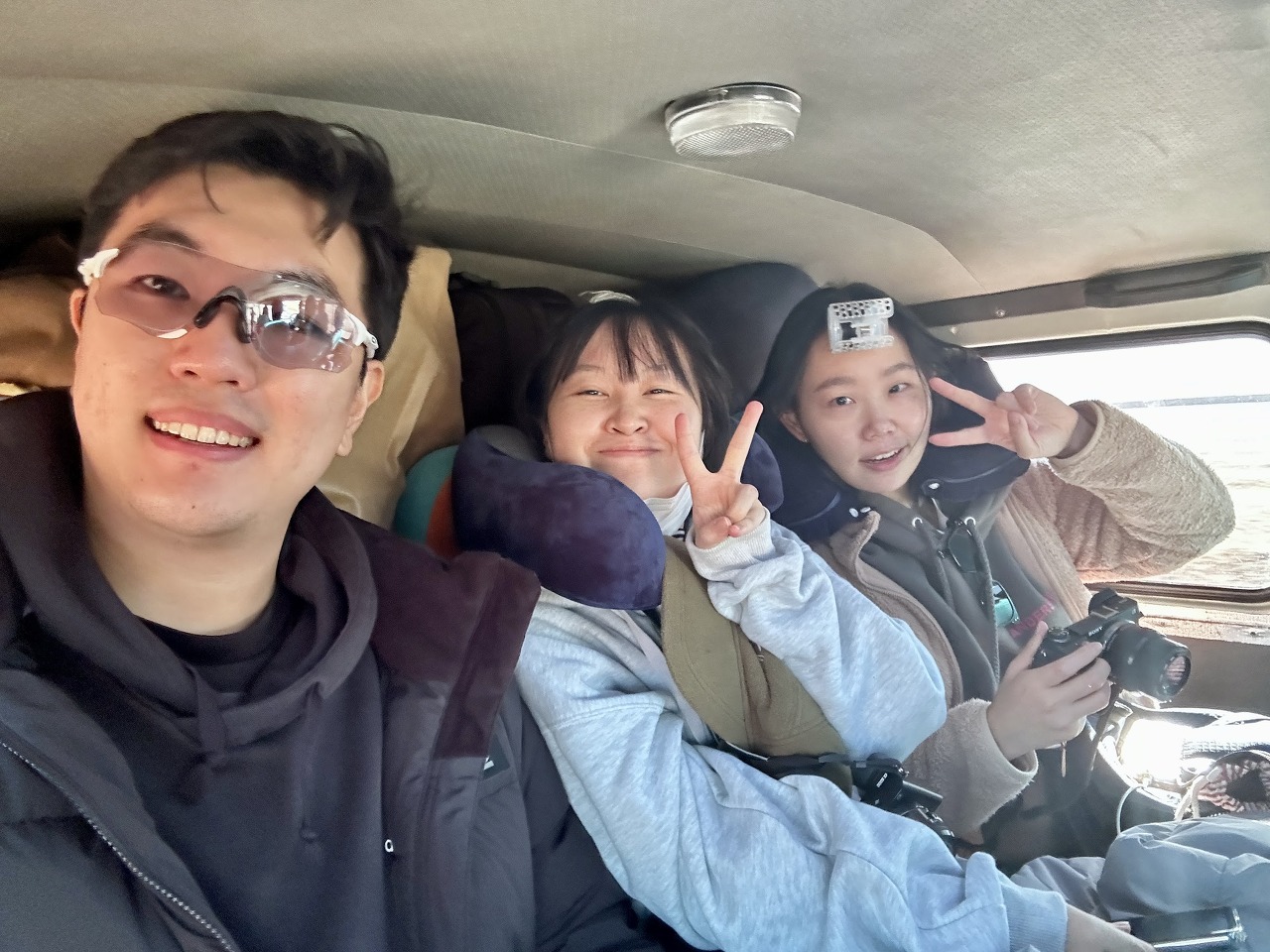 푸르공 내부에서 한 컷, 즐거운 동지들과 함께