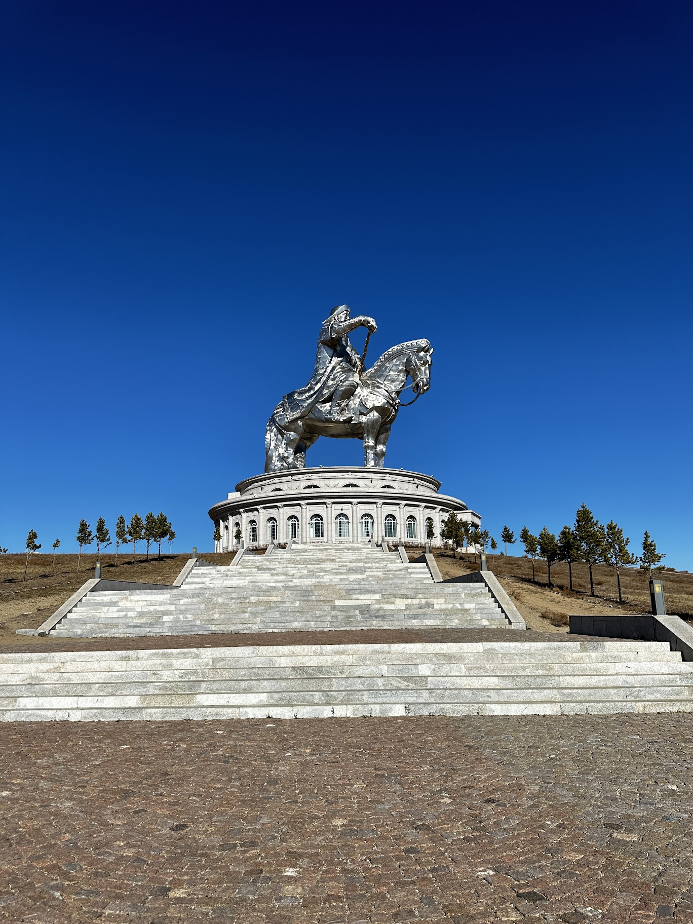역사상 가장 위대한 정복자를 뽑으라고 하면 나라마다 다른 사람이 나올 것이다. 유럽에서는 프랑스의 나폴레옹 황제, 마케도니아의 알렉산더 대왕 혹은 이슬람에서는 우마르 칼리프 등등 정복자라고 하면 이 세상이 이름을 내걸 수 있는 사람이 많이 있다고 생각한다. 하지만, 이 사진의 뒤에 있는 이 사람 앞에서는 모두 작아질 수 밖에 없을 것 같다. 나는 우리나라를 9회에 걸쳐 침략한 대 원제국을 세운 칭기즈칸의 동상에 방문했다. 우리나라 역사를 통해 보면 좋아할 수 없는 사람이지만, 개인적으로는 정말 대단한 사람이라고 생각하고 또 존경하는 인물이다.