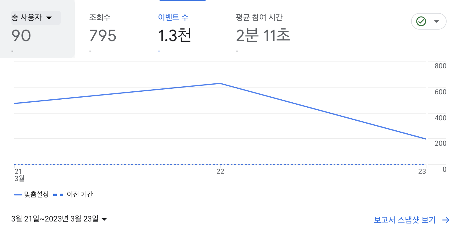 그렇게 우리는 우여곡절 끝에 GoogleGA를 포함해서 다시 배포하였고, 이를통해 우리 서비스를 사용하는 사람들이 어떻게 우리 서비스를 이용하는지 알 수 있게 되었다. 내가 만든 서비스를 사용해주는 사람들을 통계로 마주하는 것은 또 색다른 경험이었다. 실제로 내가 만든 서비스에게 저렇게 많은 사람들이 흥미를 느낌을 알게되었다. 나의 서비스가 잘됨에 기뻐하는 내 모습을 보며 나는 또 내가 걷기 시작한 이 길이 옳았음을 확신하게 되었다.